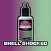 Shell Shocked starts out as white in the bottle but morphs when applied to a powered up green to light gray to purple shift paint. Reminds me of a family pet I lost one day in the sewer drain.